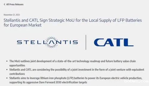 11月21日,全球第四大汽车集团Stellantis和全球动力电池龙头宁德时代宣布,双方已签署一份不具约束力的谅解备忘录。