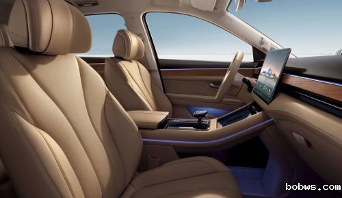 内饰依旧延续了老款设计,此次方向盘颜色与内饰进行了统一处理。新车配备了10.25英寸曲面全液晶仪表盘和15.6英寸中控屏,内置HarmonyOS智能座舱系统,以及三温区独立空调。新车搭载华为车载智慧屏系统,后排可支持两套华为车载智慧屏系统,支持前后多屏连接互动,操控车辆功能等。